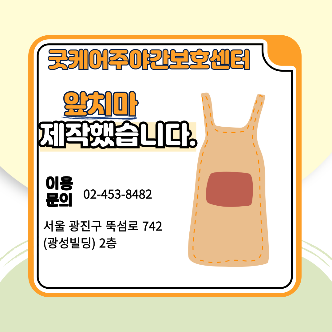 굿케어주야간보호센터에서 앞치마를 제작했습니다. ^^ https://blog.naver.com/goodcare2021/223581474970