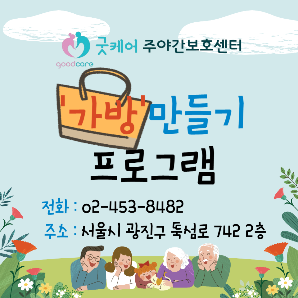 굿케어주야간보호센터에서 어르신들과 함께 가방만들기 프로그램을 진행하였습니다. https://blog.naver.com/goodcare2021/223894338954