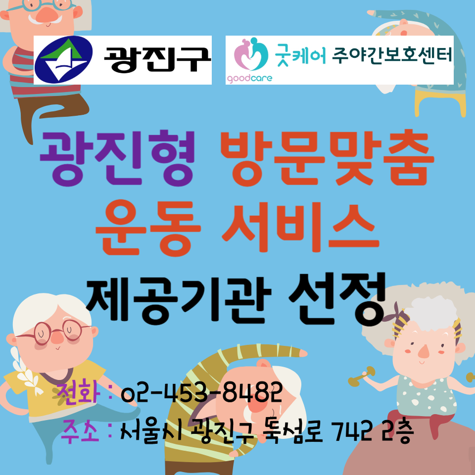 굿케어주야간보호센터는 광진구에서 지원하는 광진형 방문맞춤 운동서비스 제공기관 선정되었습니다. https://blog.naver.com/goodcare2021/223894437315
