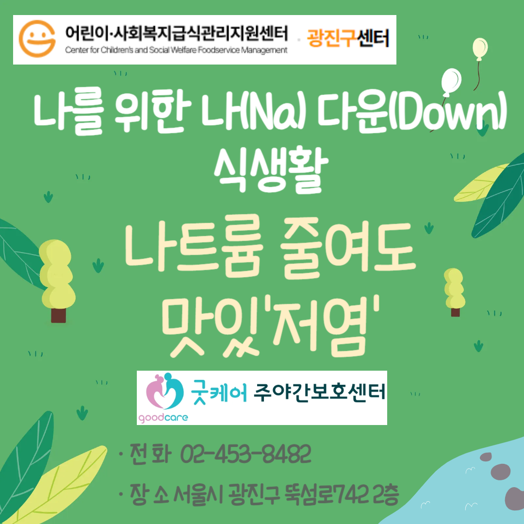광진구 어린이사회복지급식관리지원센터에서 굿케어주야간보호센터에 방문하여 저염식생활교육을 진행하였습니다. https://blog.naver.com/goodcare2021/223879426022