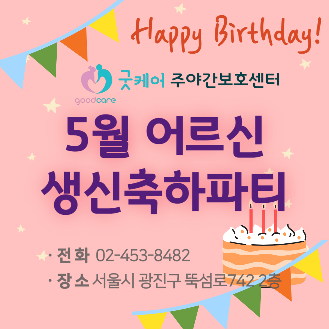 굿케어주야간보호센터에서는 5월 생신자를 축하하는 시간을 보냈습니다. https://blog.naver.com/goodcare2021/223875155106
