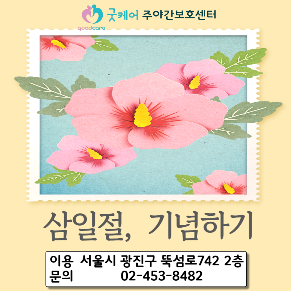 굿케어주야간보호센터에서는 삼일절을 기념하는 행사를 진행하였습니다. https://blog.naver.com/goodcare2021/223792044473